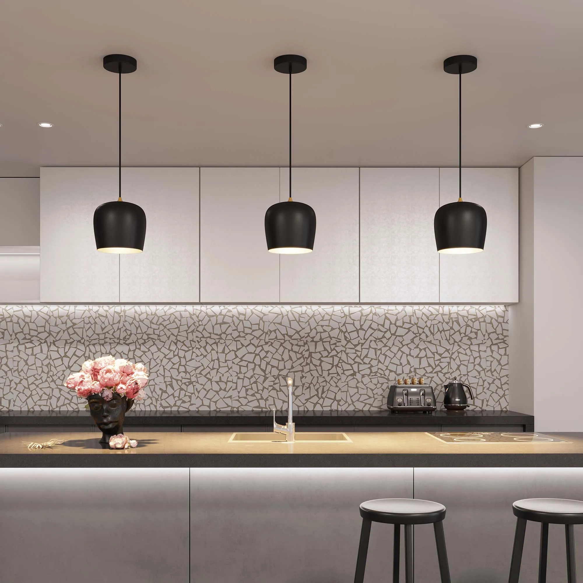 Подвесной светильник. Мощность 15 Вт, св. поток 730 лм, 50 лм/Вт, дневной 4000 K, CRI>90, угол 65°, напряжение питания 230 В. Черный круглый корпус из алюминия, степень защиты IP20. Размер: диаметр 250 мм, высота 250 мм, размер чаши: диаметр 160 мм, высота 35 мм. Монтаж подвесной, длина подвеса 1500мм. Драйвер 24-40 В, 350 мА, пульсация <5%.