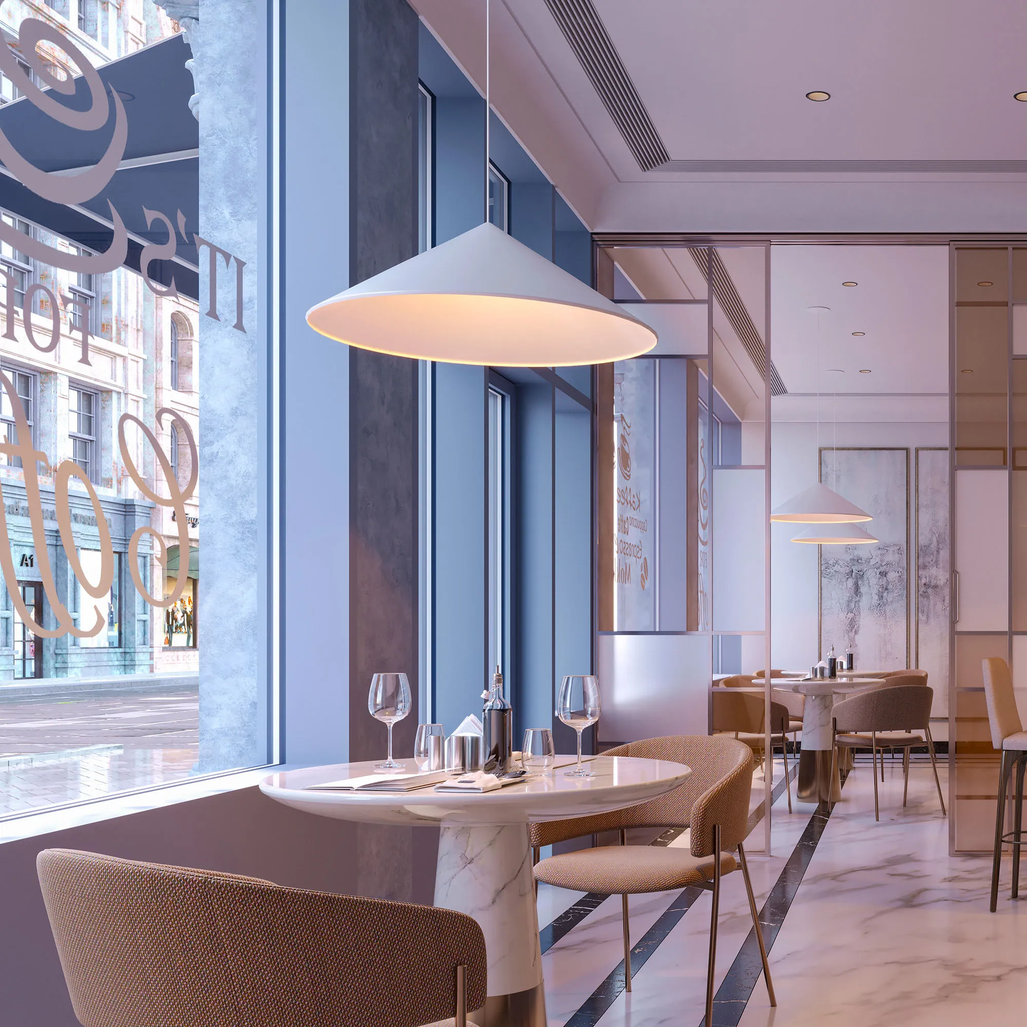 Подвесной светильник. Мощность 14 Вт, св. поток 1200 лм, 87 лм/Вт, теплый 2700 K, CRI>97, угол 36°, напряжение питания 230 В. Черный корпус из алюминия в форме конуса с белой внутренней поверхностью, линза-рассеиватель из PMMA, степень защиты IP20. Размер: диаметр 350 мм, высота 420 мм. Монтаж подвесной, длина подвеса 2000 мм, регулируемая. В комплекте 2 вида чаш. Габариты встраиваемой чаши: Ø 80x23 мм. Габариты накладной чаши Ø140x55 мм. Драйвер 27-42 В, 350 мА, пульсация <1%. Управление по TRIAC.