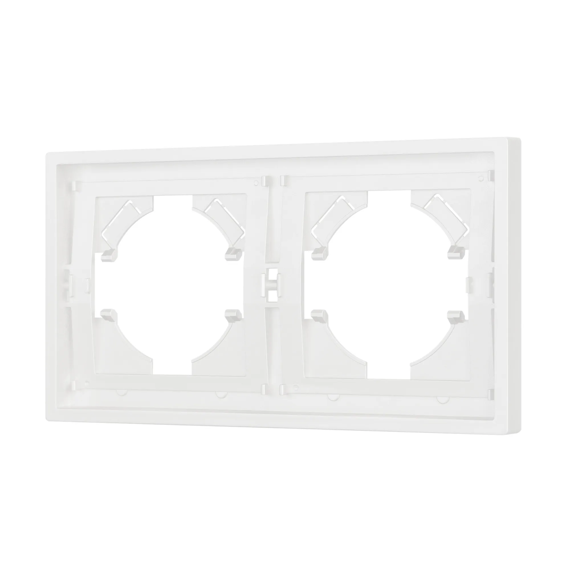 Рамка пластиковая на 2 поста, под встраиваемый механизм. Цвет - матовый белый, с Soft-Touch покрытием. Уровень герметичности IP20. Ориентация монтажа горизонтальная.